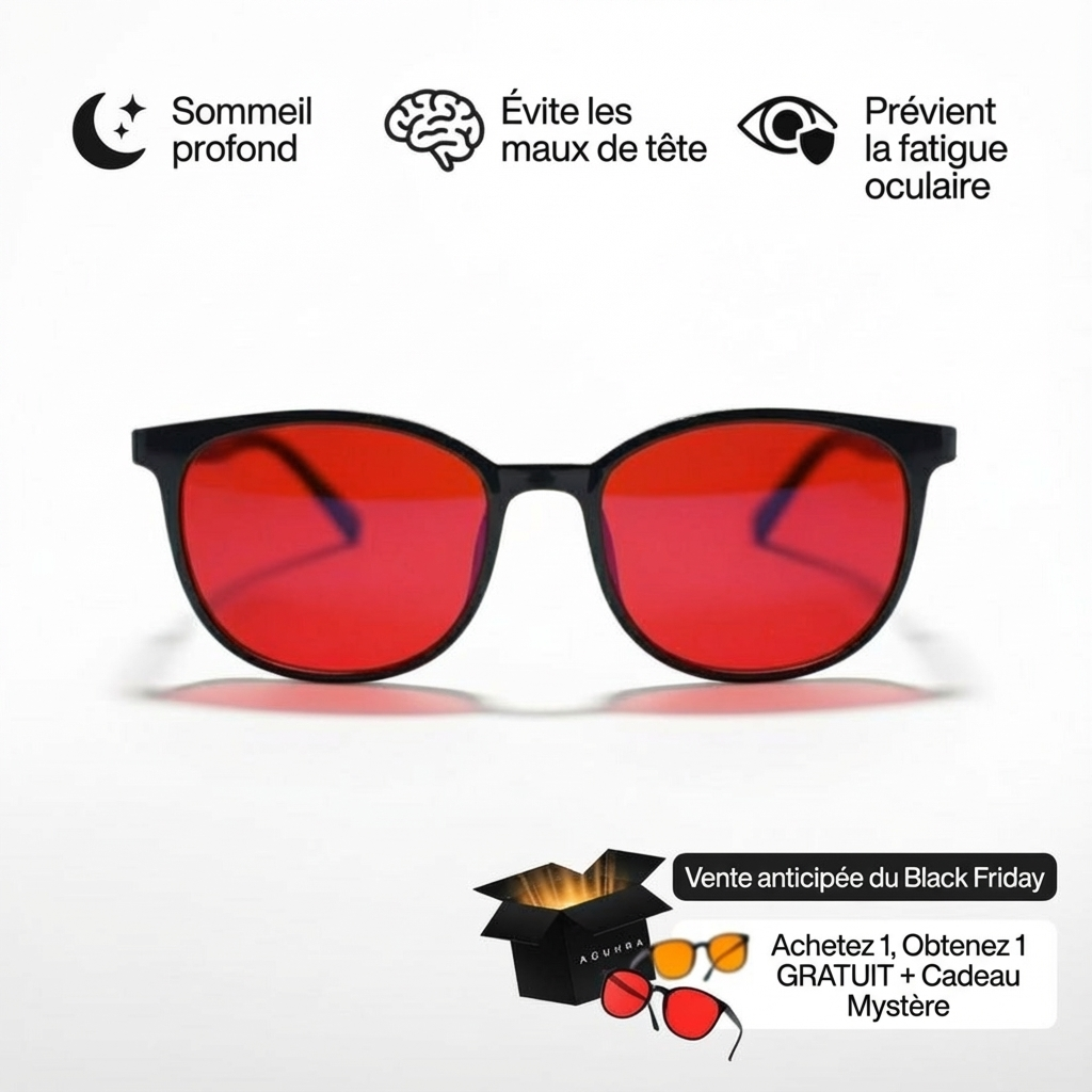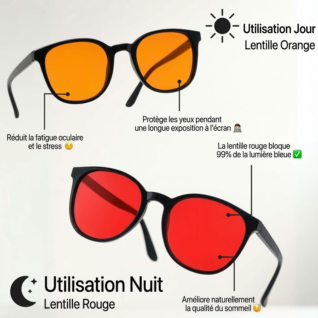 Les verres rouges protègent plus efficacement contre 99 % de la lumière bleue qui trompe le cerveau et le maintient en mode jour, pour un meilleur sommeil et un bien-être accru.